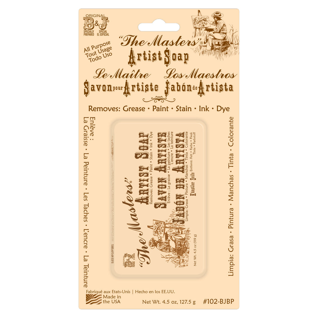 “The Masters”® Soap gently cleans and conditions hands. The B&J® Formula is non-abrasive, yet effectively removes paints, including oil, inks, dyes, grass stains, grease, and grime. Perfect for cleaning up after painting, crafting, gardening, or even working on the car. Specially formulated, this soap makes cleaning up safe and easy, while keeping your hands soft and fresh smelling. Just wash with plain water. No need to use harsh chemicals and thinners.