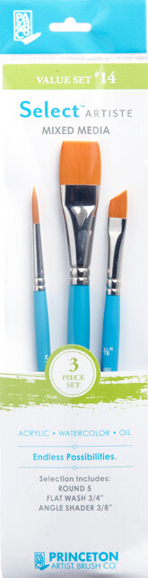 Princeton Brush Selecte Artiste 3750 Series Value Brushes created for oil, acrylic and watercolor artists. Satin-finish jewel-tone blue handles and silver ferrules make Select as beautiful to look at as it is to paint with.