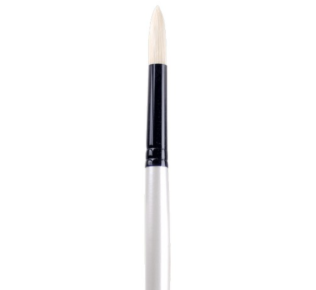 - Rounds: Smaller sizes are typically used for detail work and larger sizes tend to be used for washes and filling in color.