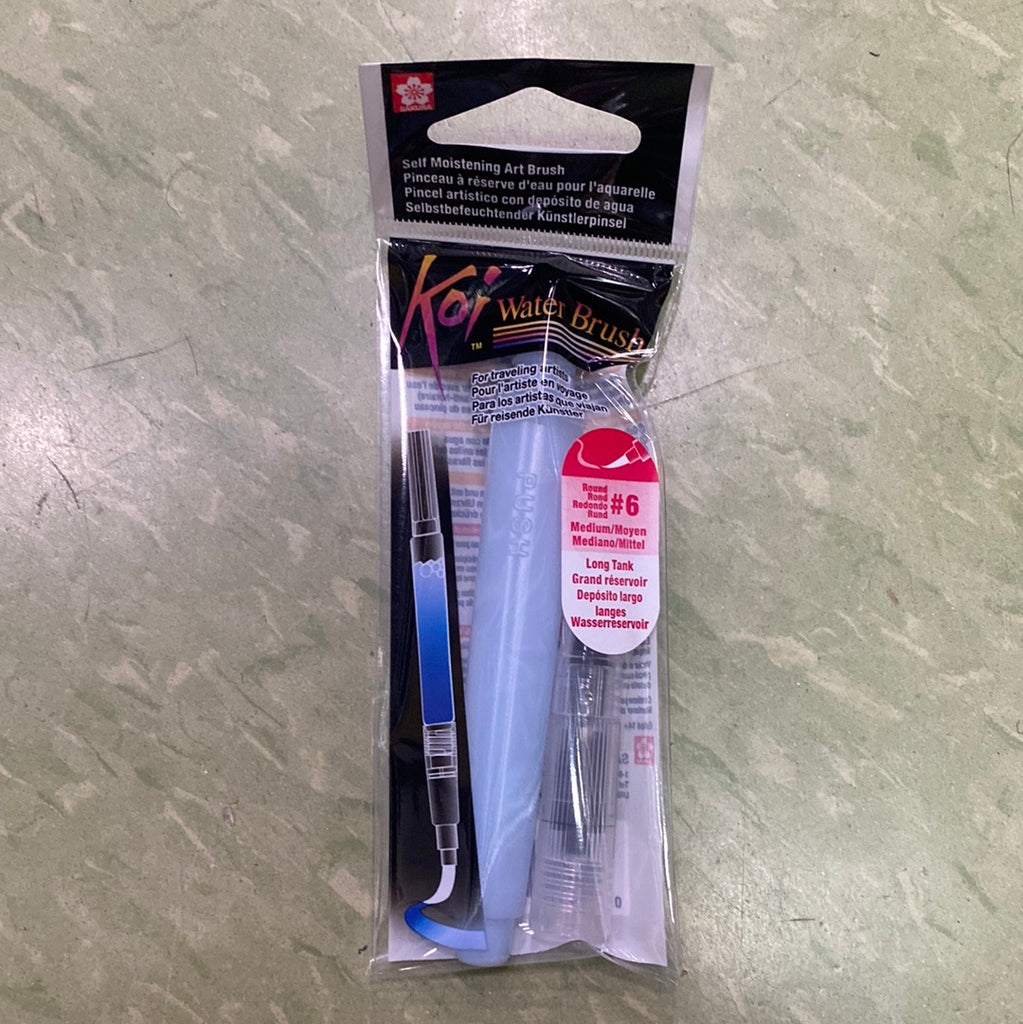 Koi Water Brushes are designed for easy transportation and storage of water when you’re away from home or the studio. The brush separates into two parts: a fine flexible brush tip, and a barrel handle with a plug to carry water. The comfortable grip is great for controlled blending, shading, and highlighting. The Koi Water Brush is available in three brush and two barrel sizes for maximum versatility.