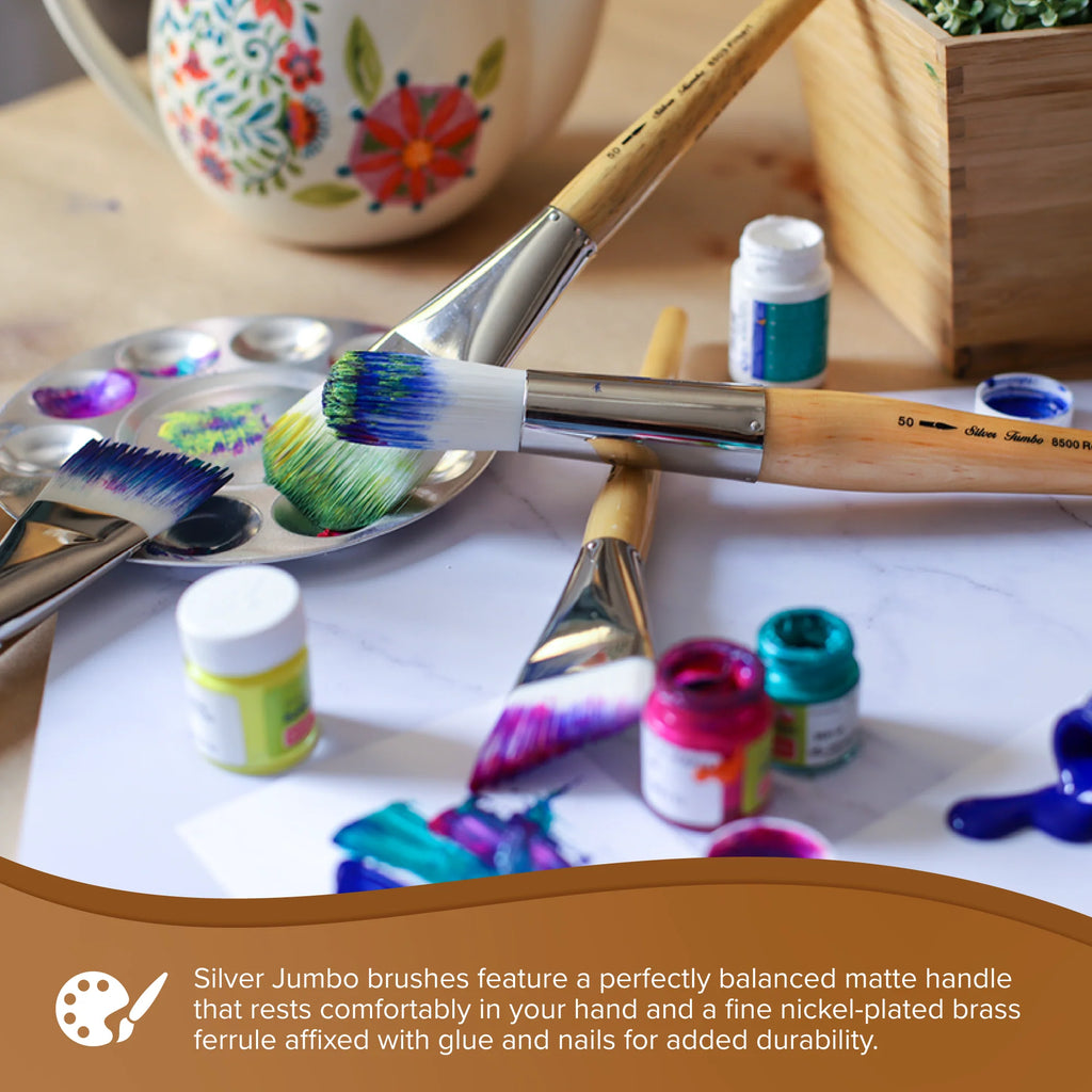 - SILVER JUMBO: Each paintbrush in our Silver Jumbo line features quality interlocking Chungking white hog bristles. It is perfect for blending and softening color.