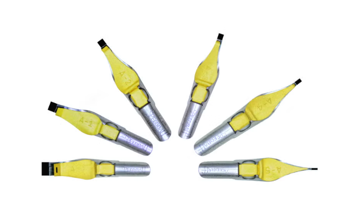 Patented in 1913 and introduced two years later, the A-Series nib is where it all started for Speedball. Its unique multi-purpose design allows artists to create a variety of strokes with just a flip of the pen. Available in (6) nib widths, the A-Series nib is ideal for any Gothic or Monoline lettering style that has lines of uniform width with a squared finish. Suitable for use with any straight/classic style penholder.