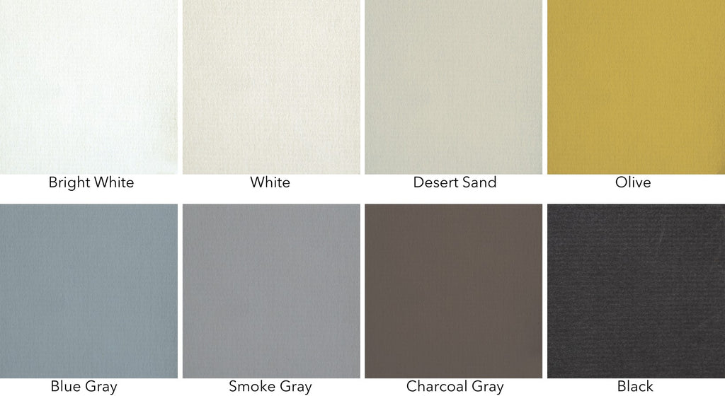 Sheet Colors Include: bright white, white, fog blue, desert sand, olive, blue gray, smoke gray, charcoal gray and black